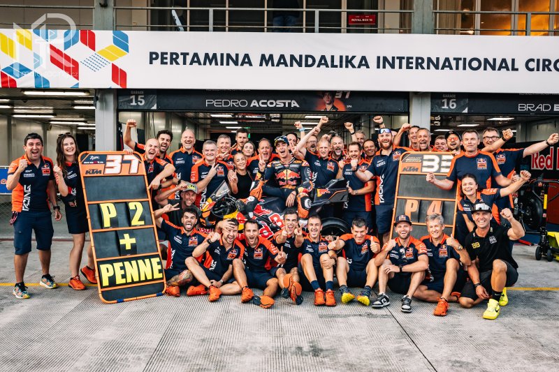 Pedro Acosta, jezdec týmu Red Bull KTM Factory Racing, se na Mezinárodním okruhu Mandalika vrátil na pódiové pozice celkové klasifikace MotoGP. Španěl s motocyklem KTM RC16 skončil druhý. Následován byl jihoafrickým závodníkem Bradem Binderem, který Grand Prix Indonésie dokončil s nejlepším výsledkem sezony, čtvrtým místem.