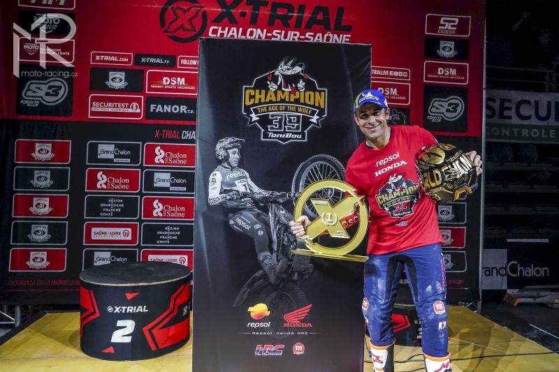 Repsol Honda HRC prožil v pátek v Chalon-Sur-Saône nezapomenutelný večer, když díky Toni Bouovi získal svůj nejnovější halový trialový titul. Španěl získal svůj 20. titul X-Trial vítězstvím v závodě, zatímco jeho týmový kolega Gabriel Marcelli obsadil druhé místo.
