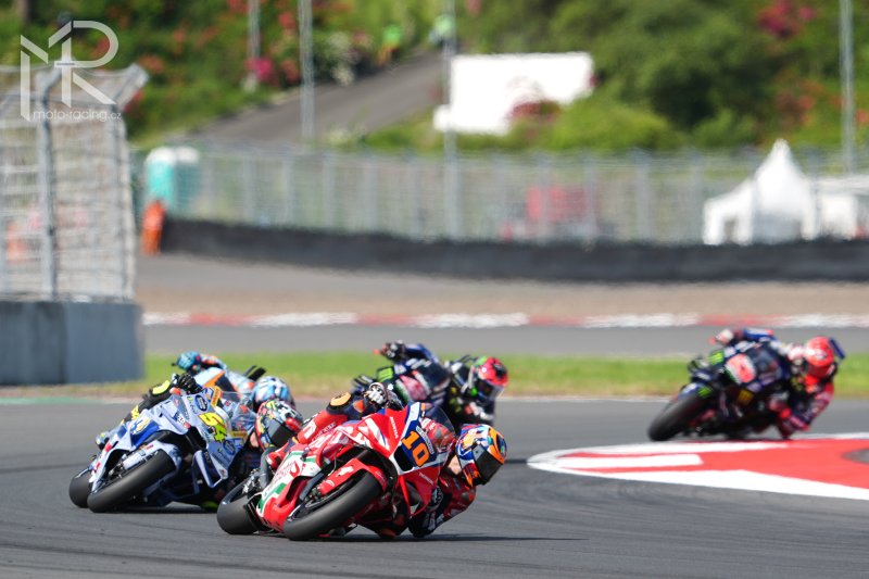 Nedělní závod začal téměř identicky jako ten sobotní, když Luca Marini a Honda RC213V vystřelili ze šestého místa vpřed a vedli pole MotoGP do první zatáčky. Zatímco se za ním odehrávalo drama, Marini se soustředil na svou závodní strategii – věřil ve své tempo pro pódium, když se na začátku přetahoval s Pedrem Acostou. Marini provedl několik manévrů, ale žádný z nich nevyšel, a tak čekal na lepší příležitost. Bohužel, optimistický manévr Raula Fernandeze srazil Mariniho z první trojky až na hranici první desítky.
