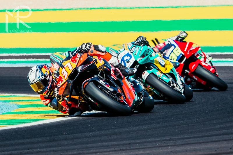 Pedro Acosta odstartoval z devátého místa na startovním roštu a ze třetí řady. Španěl se slušně probojoval a dostal se rovnou do první pětky. Jednadvacetiletý jezdec posouval hranice své přilnavosti a trakce a projel kolem šachovnicové vlajky na sedmém místě. Pedro je na třetím místě v celkovém pořadí šampionátu.